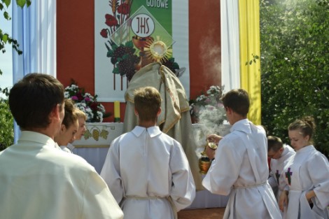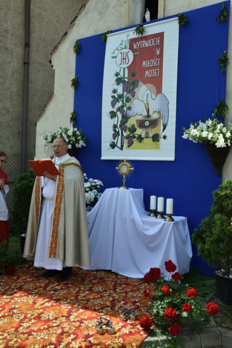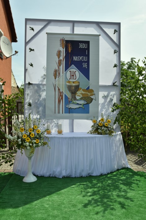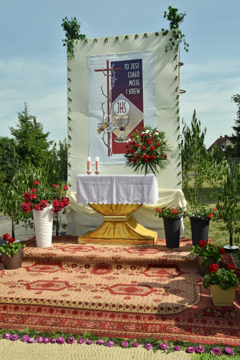 W tym roku procesja odbyła się do czterech pięknie przygotowanych ołtarzy ustawionych na ul. Stawowej (I), ul. Spółdzielczej (II i III) i ul. Powstańców Śl. (IV). Procesję przy pięknej pogodzie razem z księdzem proboszczem prowadził diakon Rudolf Wilczek z Pietrowic Wielkich.