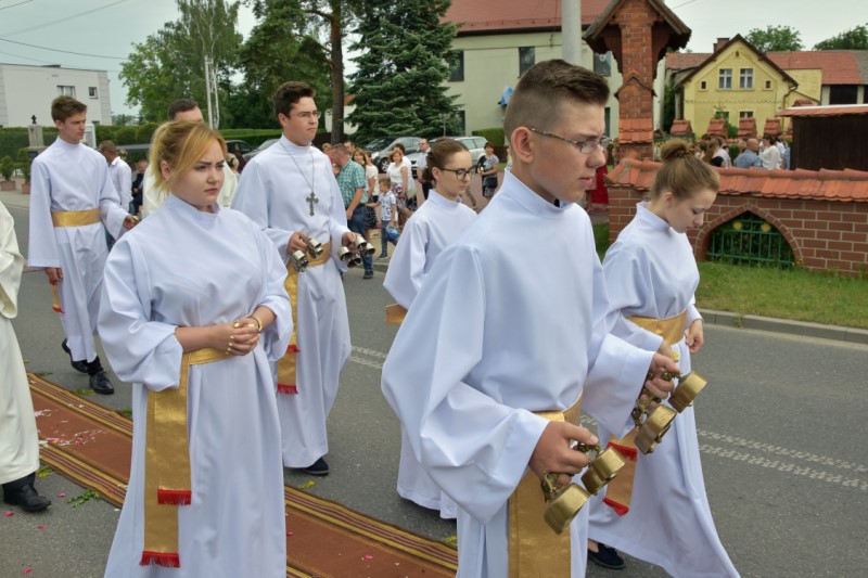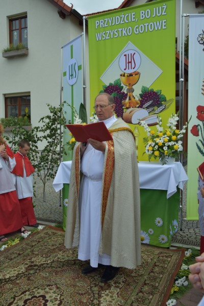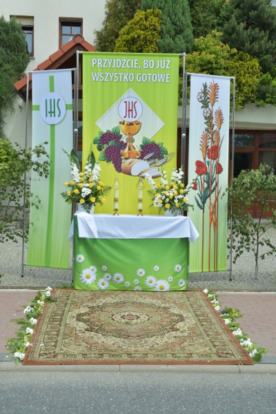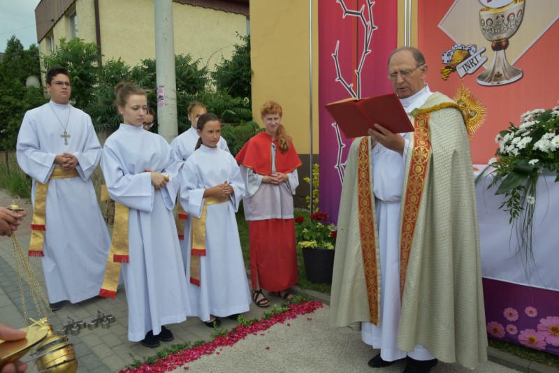 Uroczystość Bożego Ciała: w tym roku procesja odbyła się do czterech nowych, pięknie przygotowanych ołtarzy ustawionych wzdłuż ul. Powstańców Śl. Procesję przy pięknej pogodzie razem z księdzem proboszczem prowadził diakon Rudolf Wilczek z Pietrowic Wielkich.