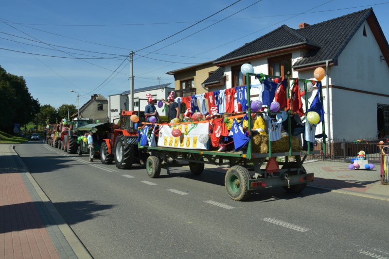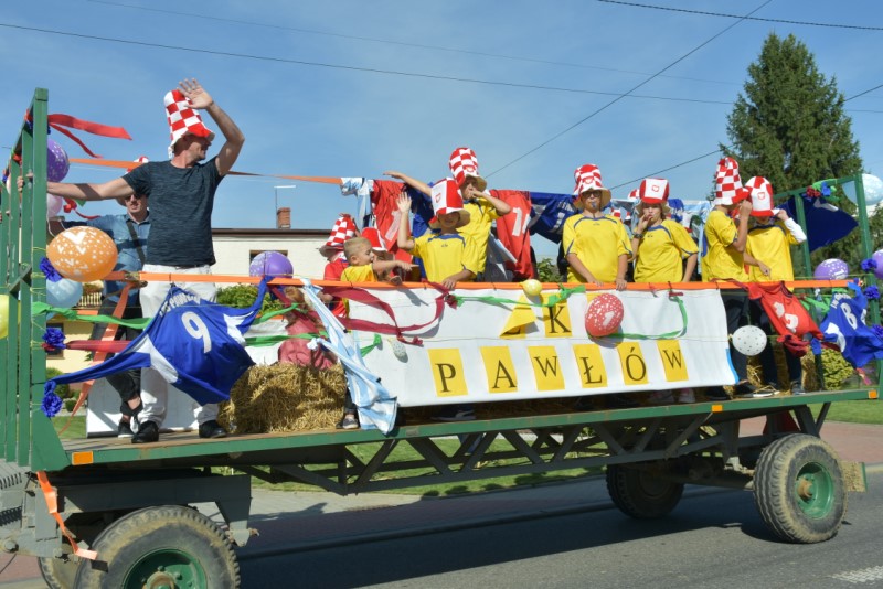 Uroczystość Dziękczynienia za tegoroczne żniwa świętowaliśmy przy pięknej pogodzie. Msza św. o godz. 12.00, a po niej wyruszył korowód dożynkowy z placu przy probostwie. Jak zwykle był bardzo kolorowy. Wieś była bardzo pięknie udekorowana. Po Mszy św. odbył się festyn dożynkowy, na którym wystąpiły zespoły: BIESIADA Z HUMOREM i WEHIKUŁ CZASU – HITY LAT 80. I 90. Charytatywna Loteria Dożynkowa z cennymi nagrodami, zuzka, bufet, napoje i na koniec zabawa taneczna przy akompaniamencie zespołu ORION do godz. 1.00 – to wszystko zgromadziło setki gości. Starostami dożynek byli małżonkowie Jolanta i Piotr Opolony. Dożynki zostały przygotowane przez Sołtysa i Radę Sołecką przy współpracy z Parafią oraz LKS Pawłów, OSP Pawłów i jak zawsze przy ogromnym zaangażowaniu wiernych, zwłaszcza jeżeli chodzi o przyniesione nagrody na loterię dożynkową, z której dochód w całości przeznaczono na dofinansowanie zakupu opału do kościoła.