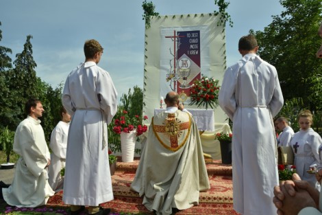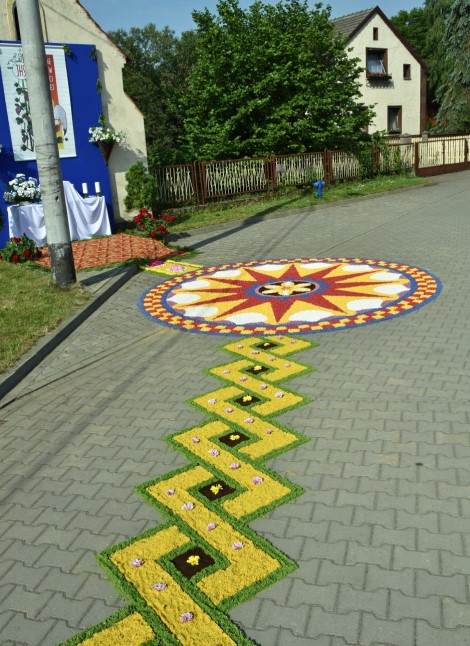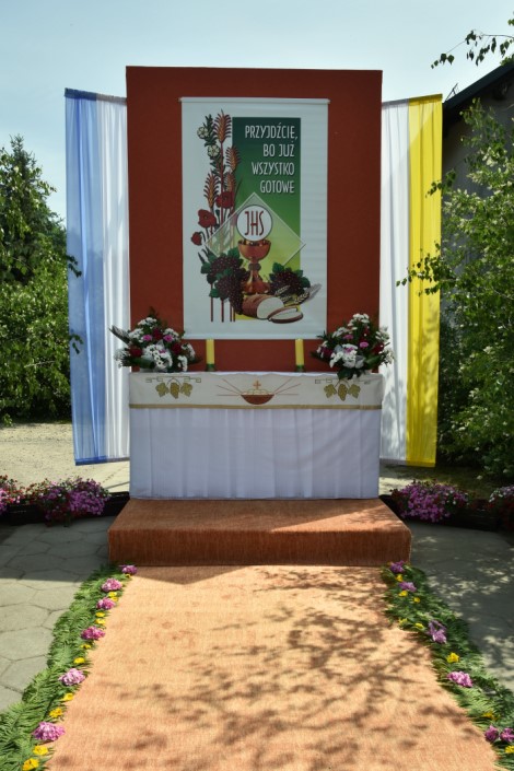 W tym roku procesja odbyła się do czterech pięknie przygotowanych ołtarzy ustawionych na ul. Stawowej (I), ul. Spółdzielczej (II i III) i ul. Powstańców Śl. (IV). Procesję przy pięknej pogodzie razem z księdzem proboszczem prowadził diakon Rudolf Wilczek z Pietrowic Wielkich.