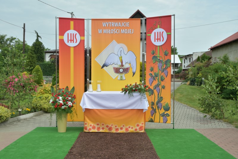 Uroczystość Bożego Ciała: w tym roku procesja odbyła się do czterech nowych, pięknie przygotowanych ołtarzy ustawionych wzdłuż ul. Powstańców Śl. Procesję przy pięknej pogodzie razem z księdzem proboszczem prowadził diakon Rudolf Wilczek z Pietrowic Wielkich.