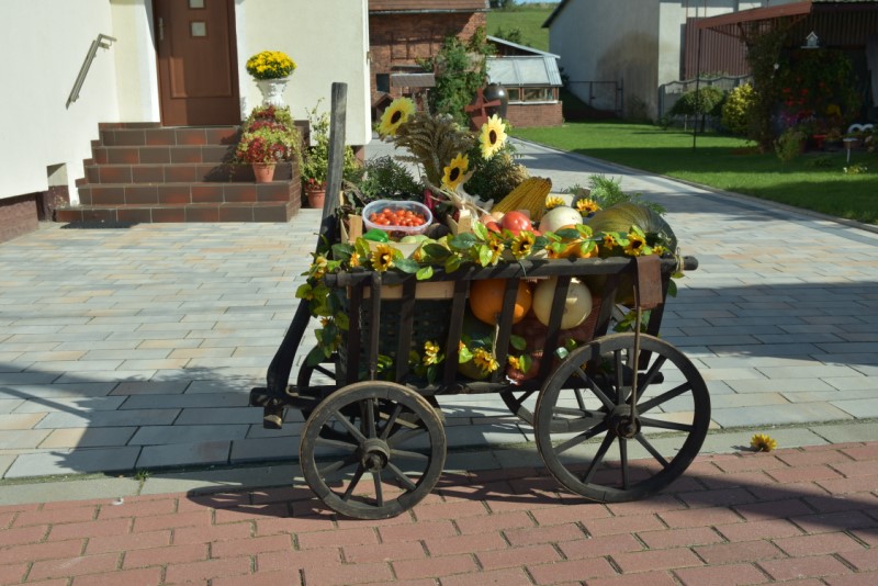 Uroczystość Dziękczynienia za tegoroczne żniwa świętowaliśmy przy pięknej pogodzie. Msza św. o godz. 12.00, a po niej wyruszył korowód dożynkowy z placu przy probostwie. Jak zwykle był bardzo kolorowy. Wieś była bardzo pięknie udekorowana. Po Mszy św. odbył się festyn dożynkowy, na którym wystąpiły zespoły: BIESIADA Z HUMOREM i WEHIKUŁ CZASU – HITY LAT 80. I 90. Charytatywna Loteria Dożynkowa z cennymi nagrodami, zuzka, bufet, napoje i na koniec zabawa taneczna przy akompaniamencie zespołu ORION do godz. 1.00 – to wszystko zgromadziło setki gości. Starostami dożynek byli małżonkowie Jolanta i Piotr Opolony. Dożynki zostały przygotowane przez Sołtysa i Radę Sołecką przy współpracy z Parafią oraz LKS Pawłów, OSP Pawłów i jak zawsze przy ogromnym zaangażowaniu wiernych, zwłaszcza jeżeli chodzi o przyniesione nagrody na loterię dożynkową, z której dochód w całości przeznaczono na dofinansowanie zakupu opału do kościoła.